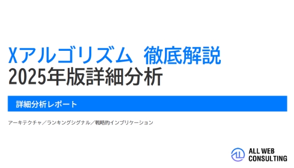 近年のX(旧Twitter)アルゴリズムは、投稿のリーチやエンゲージメントを大きく左右する要因が複雑化しています。 「【2025年最新版】Xアルゴリズム徹底解説」ホワイトペーパーでは、2025...