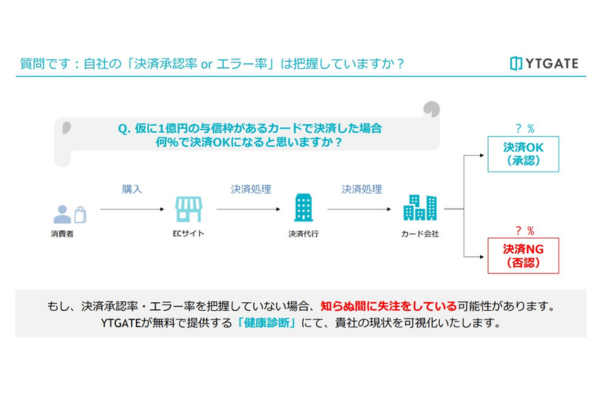 YTGATEは、EC事業者向けにクレジットカード決済の承認率向上と不正利用対策を同時に実現する、決済最適化サービスを提供しています。 決済データの可視化を起点に、承認率低下や決済エラーによる「...