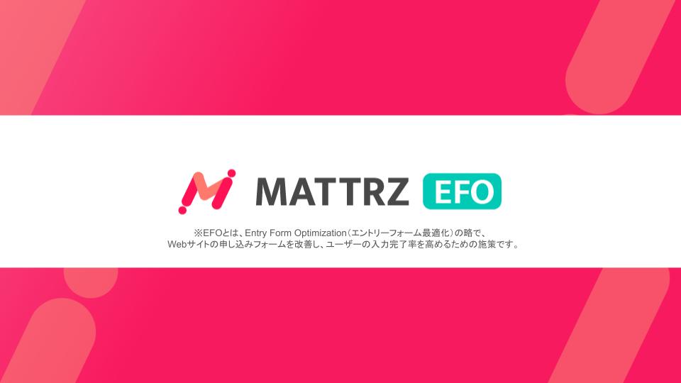 MATTRZ EFOは、Webフォームの離脱率70%という課題を解決しコンバージョン率を劇的に改善するEFOツールです。タグ1つの設置だけで、誰でも簡単にプロ品質のフォーム改善を実現できます。