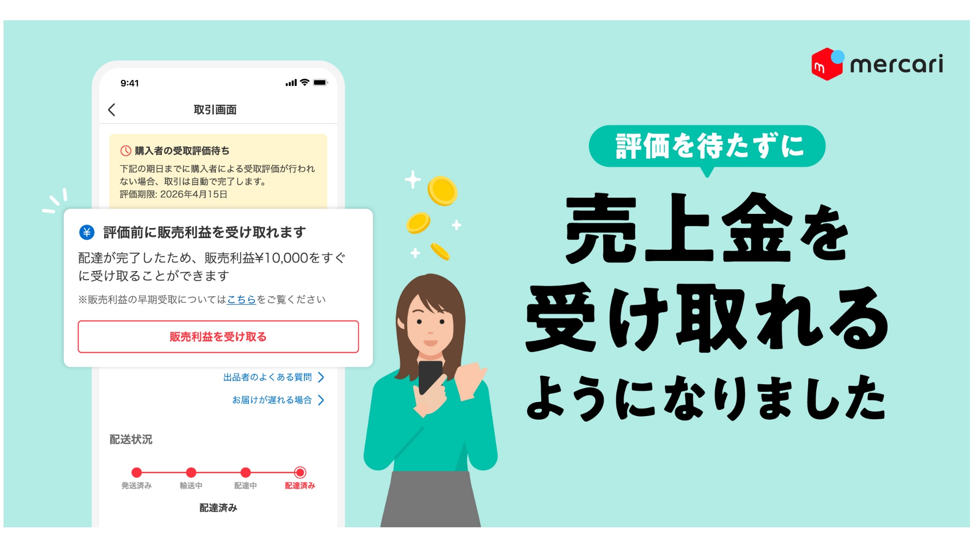 「メルカリ」、評価前に売上金を受け取れる機能を提供