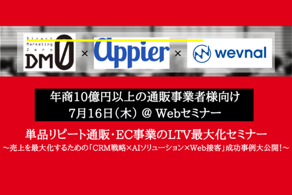 【7/16 WEB】単品リピート通販・EC事業のLTV最大化セミナー ~年商10億円の壁を突破するための「CRM戦略×AIソリューション×Web接客」成功事例大公開!~