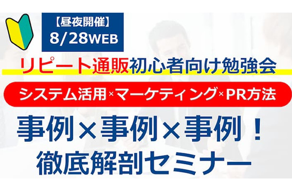 【8/28 WEB】リピート通販初心者向け勉強会システム×マーケティング×PR事例徹底解剖【昼・夜開催】