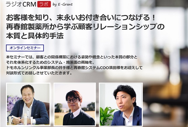 【8/25 WEB】ラジオCRMラボ対談「お客様を知り、末永いお付き合いにつなげる!再春館製薬所から学ぶ顧客リレーションシップの本質と具体的手法」
