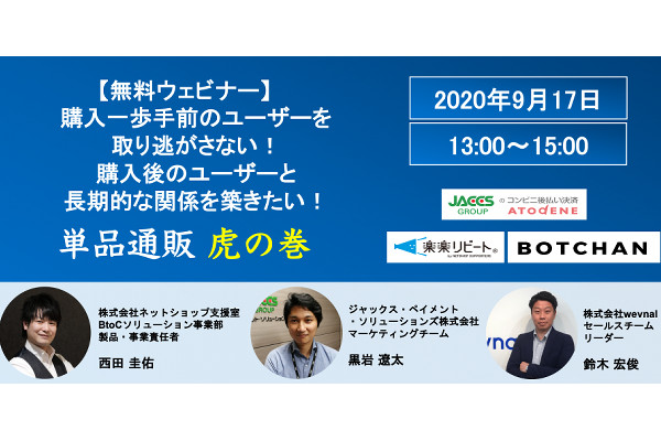 【9/17 WEB】購入一歩手前のユーザーを取り逃がさない!購入後のユーザーと長期的な関係を築きたい!単品通販 虎の巻