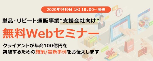 【9/9 WEB】単品・リピート通販事業支援会社向け無料Webセミナー ~クライアントが年商100億円を突破するための施策/最新事例をお伝えします~