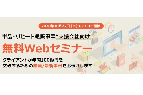 【10/22 WEB】単品・リピート通販事業支援会社向け無料Webセミナー ~クライアントが年商100億円を突破するための施策/最新事例をお伝えします~
