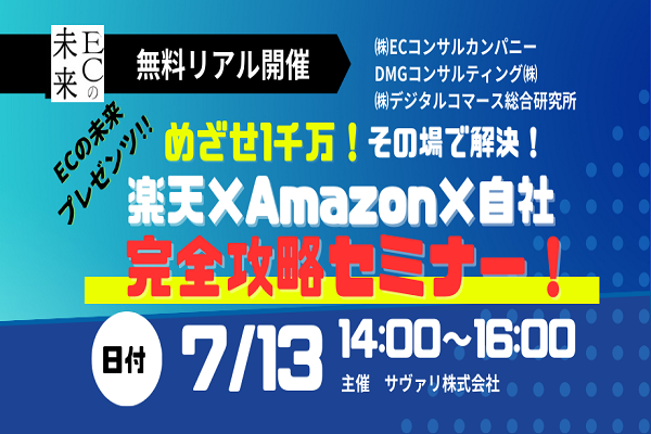 【7/13_東京】\ ECの未来プレゼンツ / めざせ1千万!その場で解決!「モールEC・自社サイト 完全攻略リアルセミナー」
