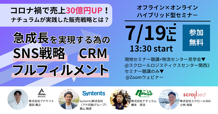 【7/19_大阪&WEB】急成長を実現する為のSNS戦略/CRM/フルフィルメント ~コロナ過で売上30億円UP!ナチュラムが実践した販売戦略とは?~