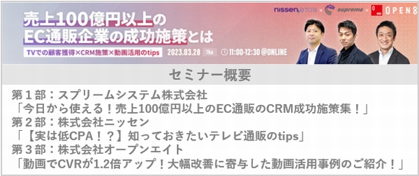 【3/28_WEB】売上100億円以上のEC通販企業の成功施策とは ~TVでの顧客獲得×CRM施策×動画活用のtips~