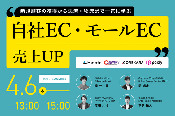 【4/6_WEB】自社ECサイト・モールECの売上UP! ~新規顧客の獲得から決済・物流まで一気に学べる無料セミナー~