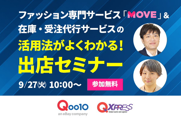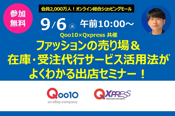 ...10がファッションの売り場を、 Qxpressがフルフィルメントサービス(保管・受注・配送などの代行 QWMSサービス)を説明します。 【オンラインセミナー 日時】 9/6(火) 午前10:00~ ...