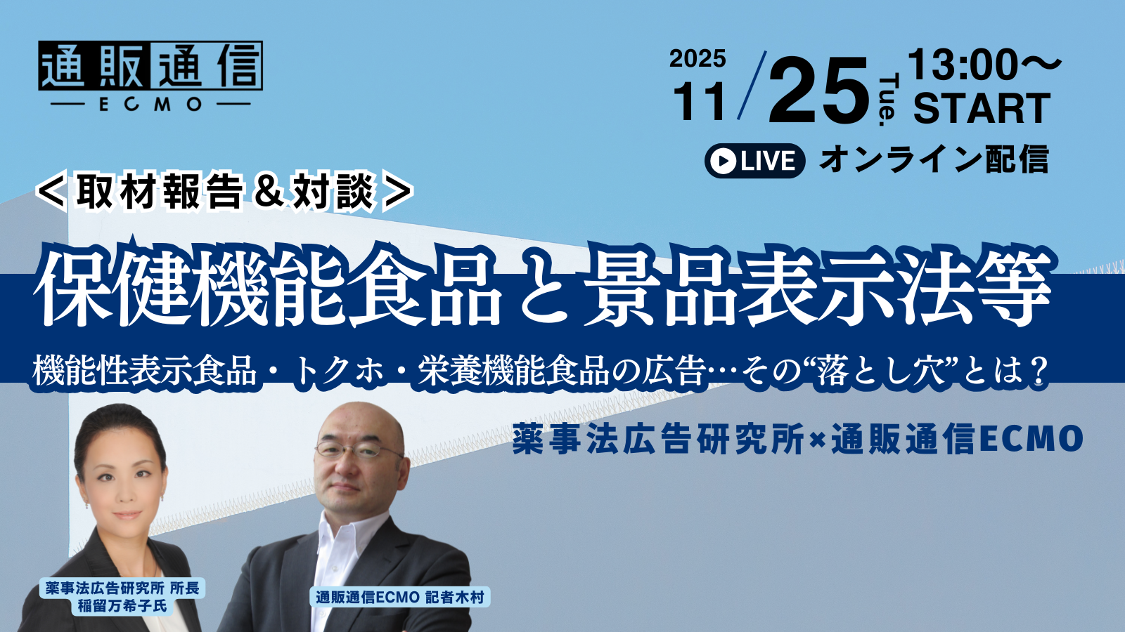 【11/25_WEB】<取材報告&対談>保健機能食品と景品表示法等 機能性表示食品・トクホ・栄養機能食品の広告…その“落とし穴”とは?…薬事法広告研究所×ECMO