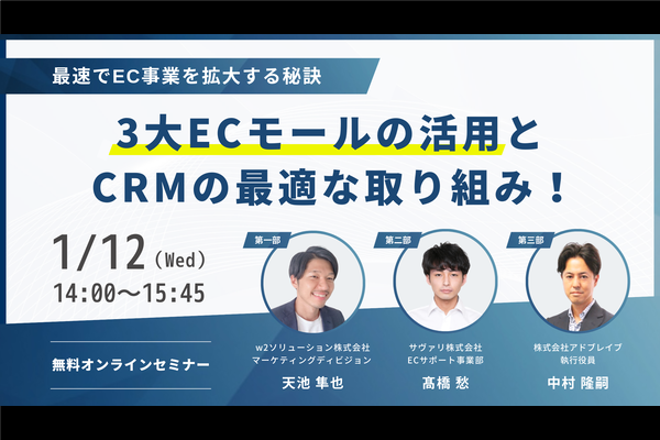 【1/12 WEB】『最速でEC事業を拡大する秘訣』3大ECモールの活用とCRMの最適な取り組み!