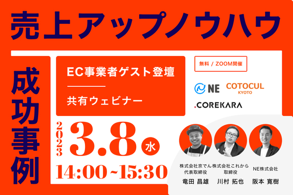【3/8_WEB】ECサイトの売上アップノウハウ&成功事例 共有ウェビナー ~成長中のネットショップに秘訣をアレコレ聞いてみました~