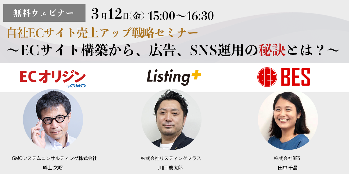 【3/12 WEB】自社ECサイト売上アップ戦略セミナー~ECサイト構築から、広告、SNS運用の秘訣とは?~