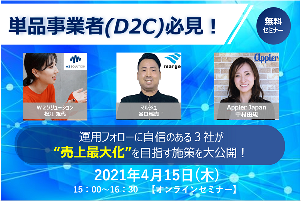 【4/15 WEB】単品事業者(D2C)必見!|運用フォローに自信のある3社が”売上最大化”を目指す施策を大公開!