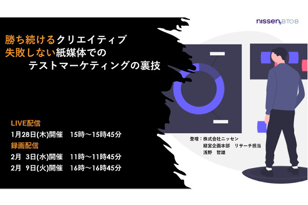 【1/28 WEB】【無料ウェビナー】勝ち続けるクリエイティブ 失敗しない紙媒体でのテストマーケティングの裏技 ※広告主限定、代理店の方お断り