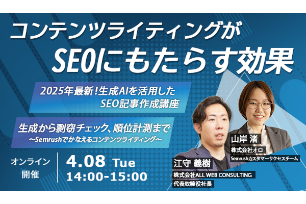 【4/8_WEB】【2社共催セミナー】コンテンツライティングがSEOにもたらす効果 〜無料ツールの限界を超える方法〜