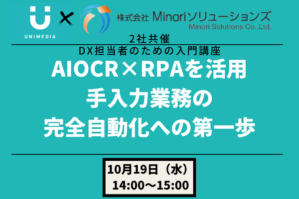 【10/19 WEB】DX化入門講座:AIOCR×RPAを活用 手入力業務の完全自動化への第一歩