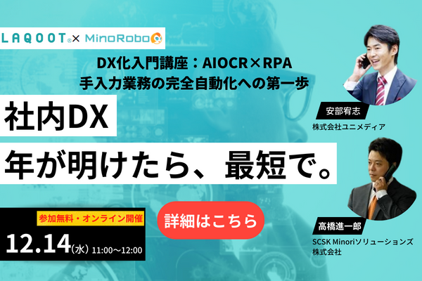 【12/14 WEB】DX化入門講座:AIOCR×RPAを活用 手入力業務の完全自動化への第一歩