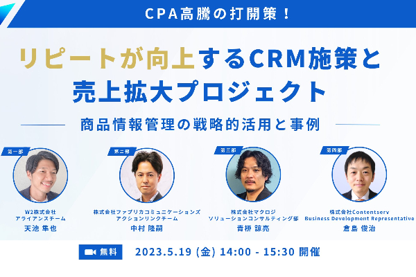 【5/19 WEB】CPA高騰の打開策!リピートが向上するCRM施策と売上拡大プロジェクト~商品情報管理の戦略的活用と事例~