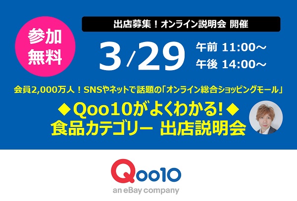 【3/29 WEB】 Qoo10がよくわかる!食品売り場の出店セミナー◆オンライン開催◆