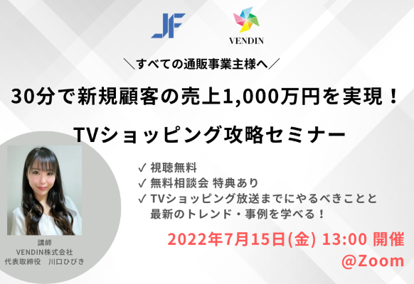 【7/15 WEB】30分で新規顧客の売上1,000万円を実現!TVショッピング攻略セミナー