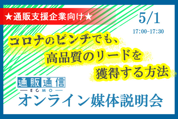 【5/1 WEB】★通販支援企業向け★コロナのピンチでも、高品質のリードを獲得する方法…「通販通信ECMO」OL媒体説明会