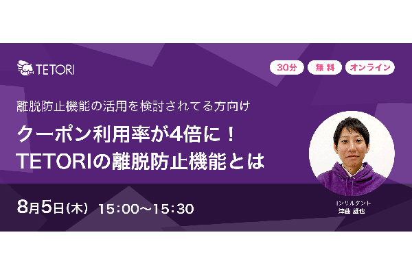 【8/5 WEB】クーポン利用率が4倍に!TETORIの離脱防止機能とは?