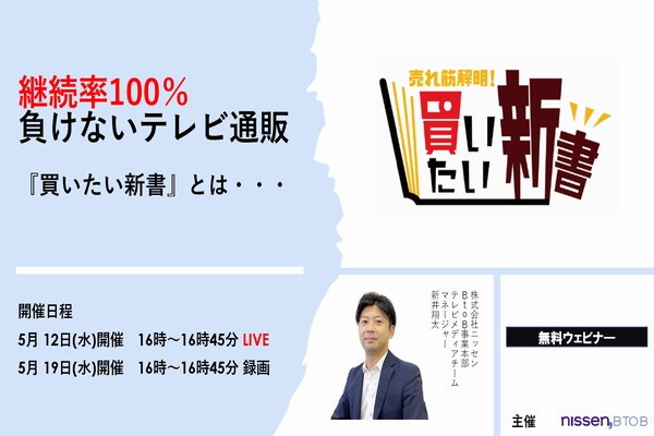 【5/19 WEB】【無料ウェビナー】継続率100%のテレビ通販 “買いたい新書”とは ※広告主限定、代理店の方お断り