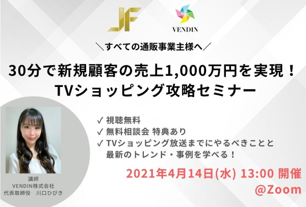 【4/14 WEB】30分で新規顧客の売上1,000万円を実現! TVショッピング攻略セミナー