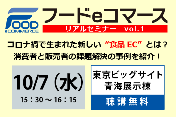 ...今まで以上に注目され、拡大しています。食品を扱ったECについても、飲食店をはじめ多くの食品事業者がECを始めるに至りました。今後益々注目・普及が予想される“食品EC"をテーマにしたオフラインセミナーが東京ビッグサイ...