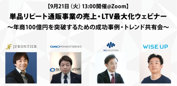 【9/21 WEB】単品リピート通販事業の売上・LTV最大化ウェビナー~年商100億円を突破するための成功事例・トレンド共有会~
