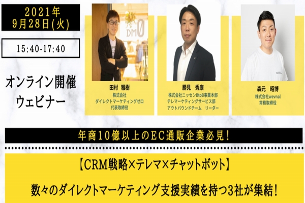 【9/28 WEB】【無料ウェビナー】CRM戦略×テレマ×チャットボット ノウハウ大公開セミナー!