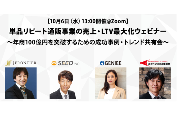 【10/6 WEB】単品リピート通販事業の売上・LTV最大化ウェビナー~年商100億円を突破するための成功事例・トレンド共有会~