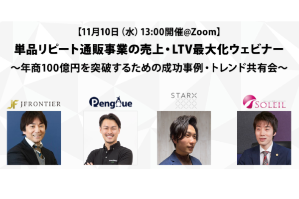 【11/10 WEB】単品リピート通販事業の売上・LTV最大化ウェビナー~年商100億円を突破するための成功事例・トレンド共有会~