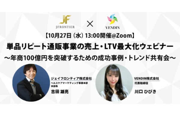 ...ると考えています。 そうした想いから、「単品リピート通販事業の売上・LTV最大化ウェビナー~年商100億円を突破するための成功事例・トレンド共有会~」を開催することにいたしました。 今回のウェビナーでは、消...