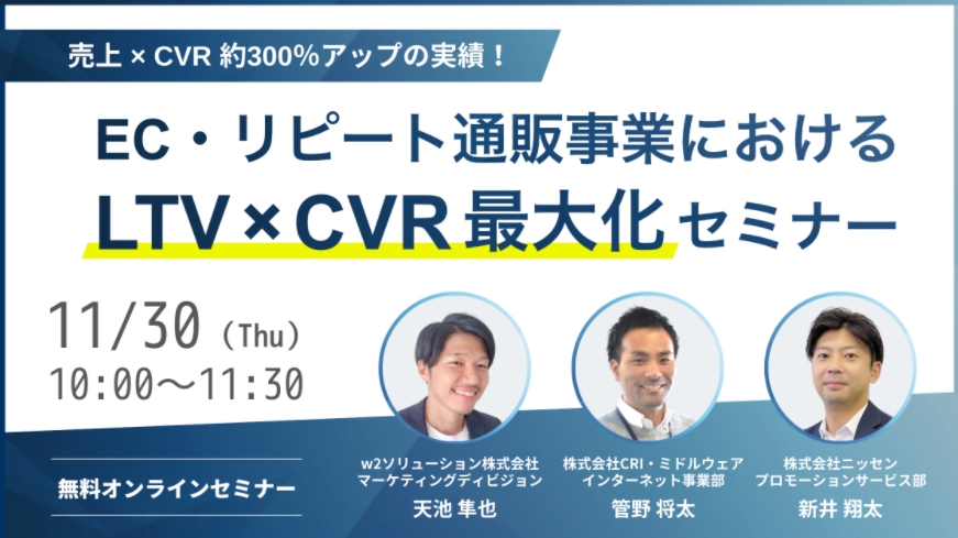 【11/30 WEB】売上×CV約300%UPの実績!EC・リピート通販事業におけるLTV×CVR最大化セミナー