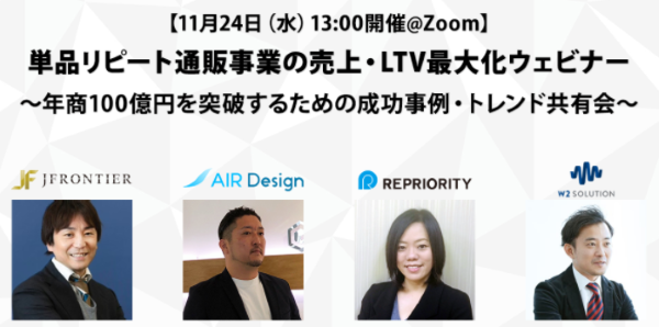 【11/17 WEB】単品リピート通販事業の売上・LTV最大化ウェビナー~年商100億円を突破するための成功事例・トレンド共有会~