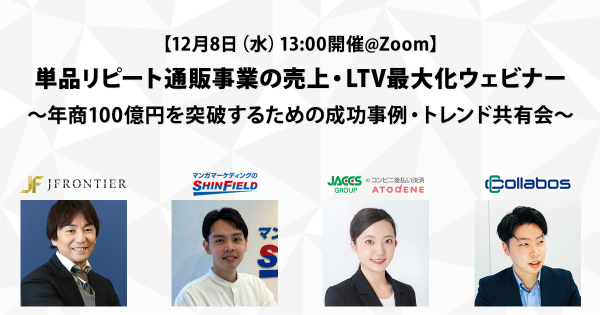 【12/8 WEB】単品リピート通販事業の売上・LTV最大化ウェビナー~年商100億円を突破するための成功事例・トレンド共有会~