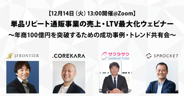 【12/14 WEB】単品リピート通販事業の売上・LTV最大化ウェビナー~年商100億円を突破するための成功事例・トレンド共有会~