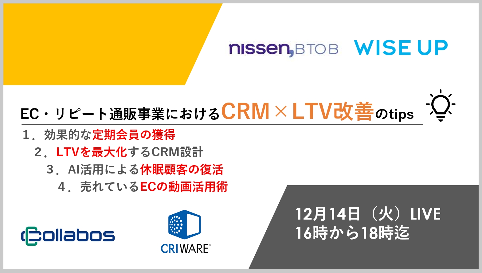 【12/14 WEB】EC・リピート通販事業における”CRM×LTV改善のtips”