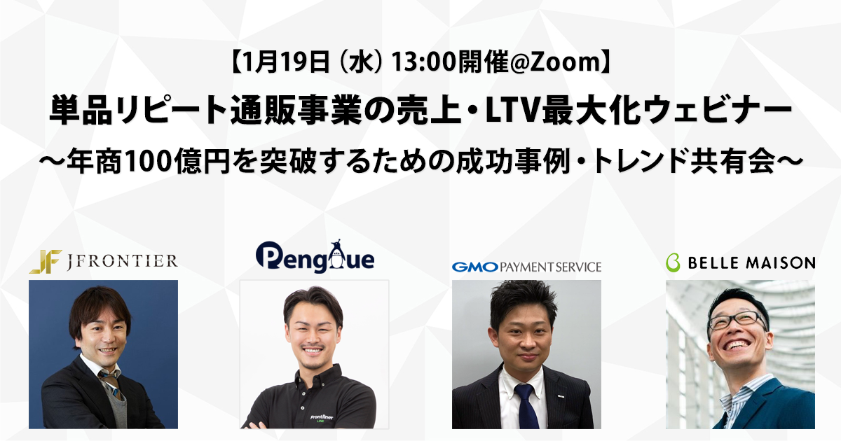 【1/19 WEB】単品リピート通販事業の売上・LTV最大化ウェビナー~年商100億円を突破するための成功事例・トレンド共有会~