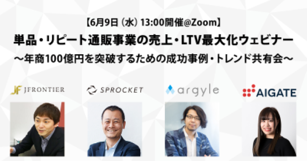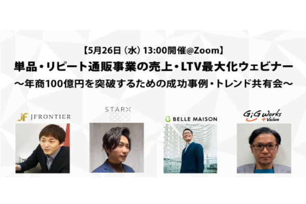 【5/26無料ウェビナー】単品・リピート通販事業の売上・LTV最大化ウェビナー~年商100億円を突破するための成功事例・トレンド共有会~