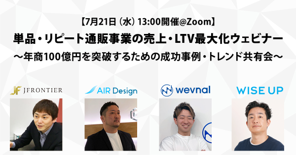 【7/21 WEB】単品・リピート通販事業の売上・LTV最大化ウェビナー~年商100億円を突破するための成功事例・トレンド共有会~