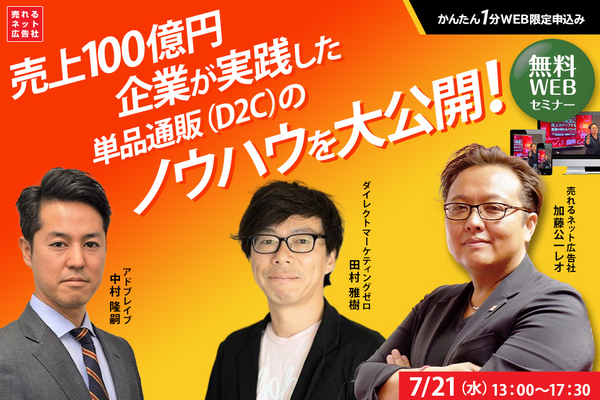 【7/21 WEB】売上100億円企業が実践した単品通販(D2C)のノウハウを大公開!