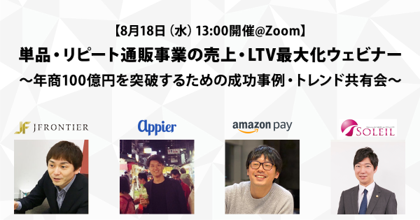 【8/18 WEB】単品・リピート通販事業の売上・LTV最大化ウェビナー~年商100億円を突破するための成功事例・トレンド共有会~