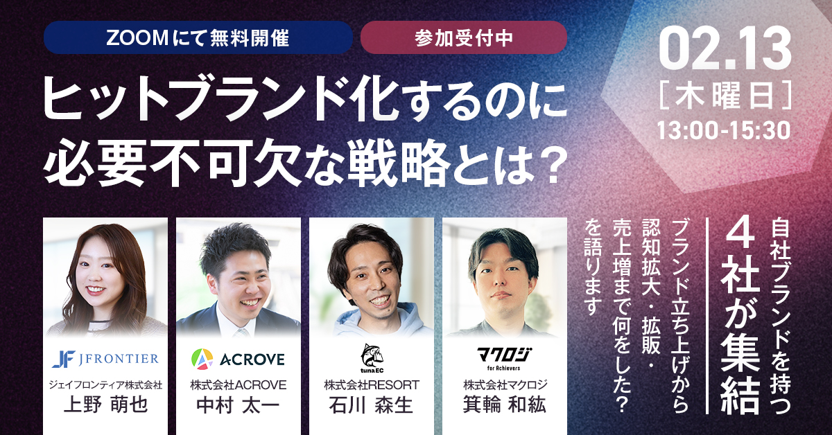 【2/13_WEB】自社ブランドを持つ4社が集結 ヒットブランド化するのに必要不可欠な戦略とは? #第二類医薬品 #プロテイン #家具 #インテリア