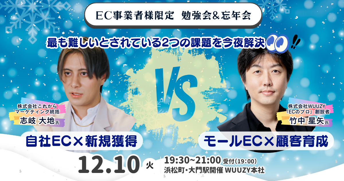 【12/10_東京】<EC事業者様限定 オフライン交流会&勉強会>最も難しいとされている2つの課題を今夜解決!! 「自社EC×新規獲得 VS モールEC×顧客育成」