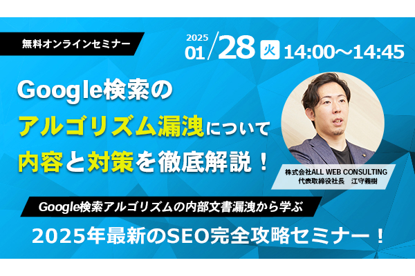 【1/28_WEB】Googleアルゴリズム内部文書漏洩から学ぶSEO最新対策セミナー